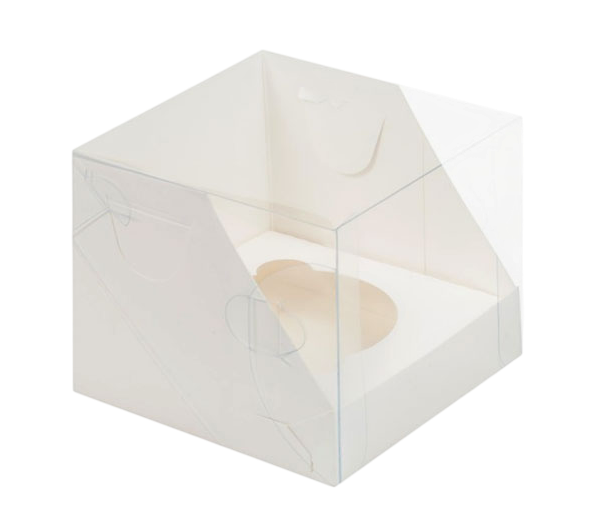 Презентационная коробка для 1 капкейка, белая с прозрачной крышкой.