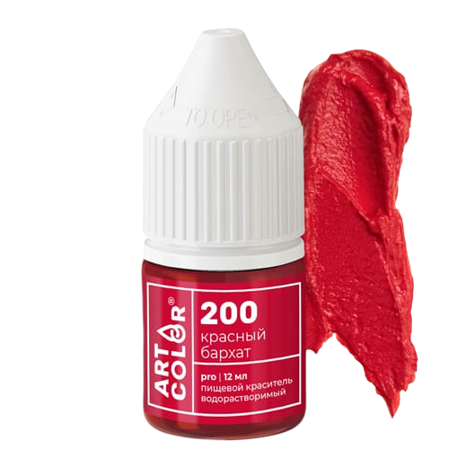 Профессиональный гель для насыщенного бархатного красного оттенка Pantone 200C. Высокая концентрация, не влияет на консистенцию кремов и масс. Флакон 12 мл с защитой первого вскрытия и точным дозатором.