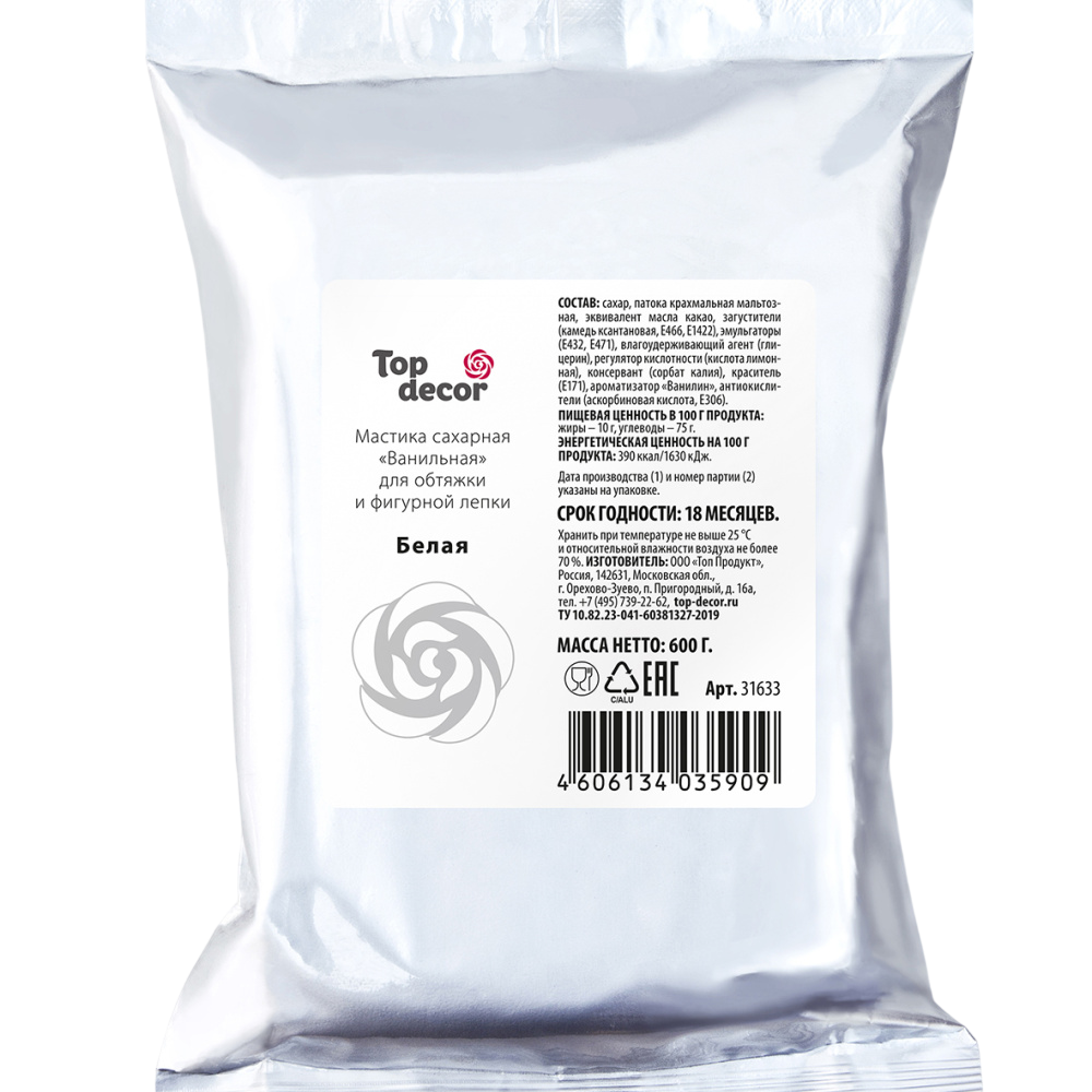 Сахарная мастика с тонким ароматом ванили — это уникальный кондитерский полуфабрикат премиум-класса для профессионального и домашнего декорирования. Созданная на основе эквивалента какао-масла, она обладает идеальной пластичностью, не липнет к рукам и является универсальной массой для обтяжки тортов, фигурной лепки и создания тончайших элементов декора.