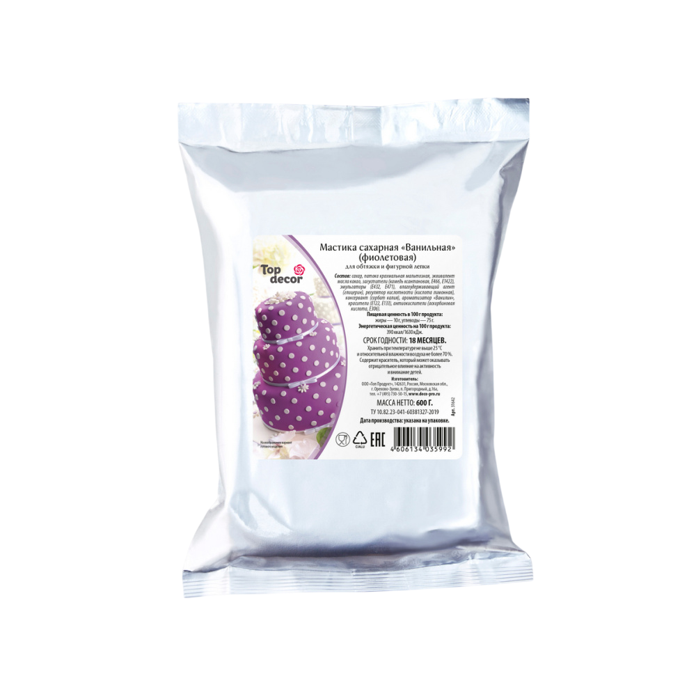 Сахарная мастика с тонким ароматом ванили — это уникальный кондитерский полуфабрикат премиум-класса для профессионального и домашнего декорирования. Созданная на основе эквивалента какао-масла, она обладает идеальной пластичностью, не липнет к рукам и является универсальной массой для обтяжки тортов, фигурной лепки и создания тончайших элементов декора.