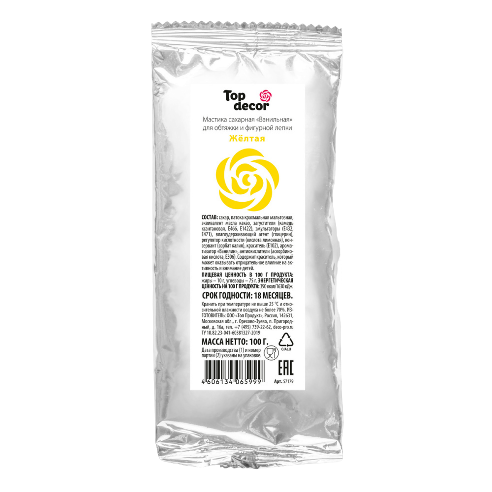 Сахарная мастика с тонким ароматом ванили — это уникальный кондитерский полуфабрикат премиум-класса для профессионального и домашнего декорирования. Созданная на основе эквивалента какао-масла, она обладает идеальной пластичностью, не липнет к рукам и является универсальной массой для обтяжки тортов, фигурной лепки и создания тончайших элементов декора.