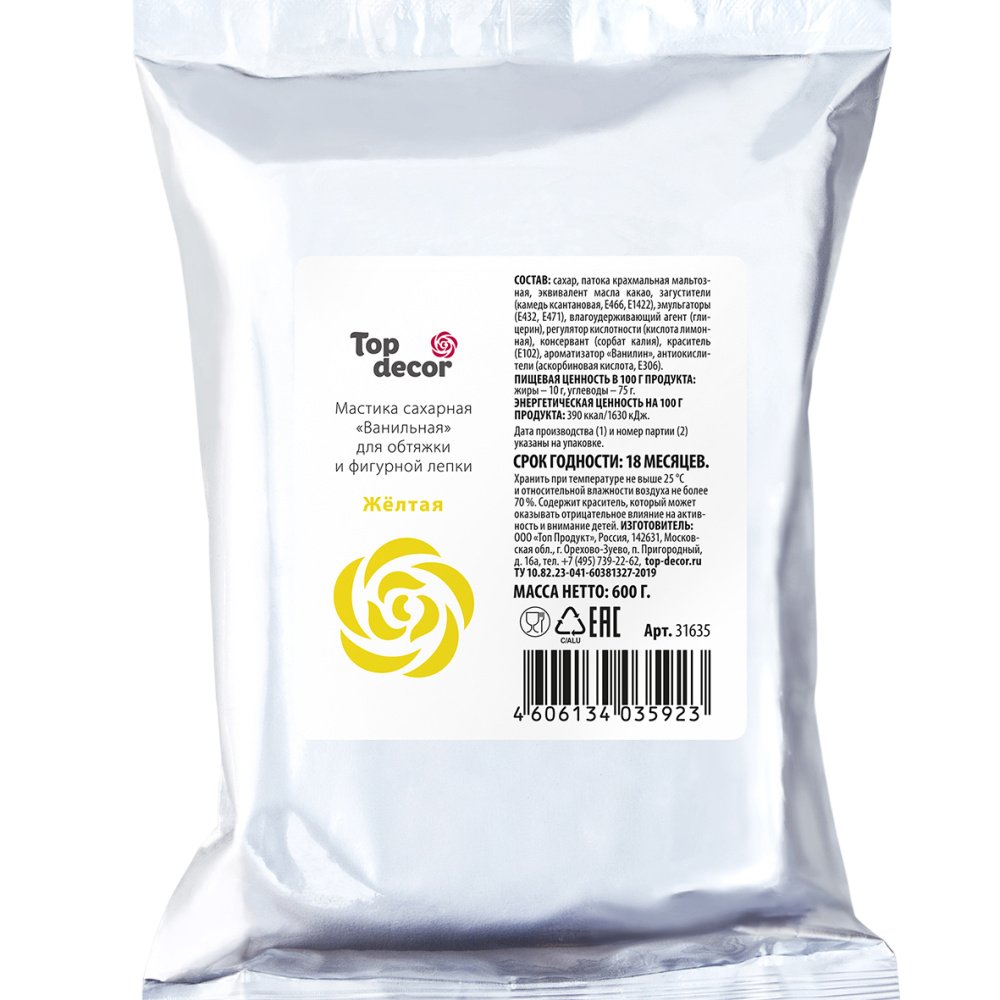 Сахарная мастика с тонким ароматом ванили — это уникальный кондитерский полуфабрикат премиум-класса для профессионального и домашнего декорирования. Созданная на основе эквивалента какао-масла, она обладает идеальной пластичностью, не липнет к рукам и является универсальной массой для обтяжки тортов, фигурной лепки и создания тончайших элементов декора.