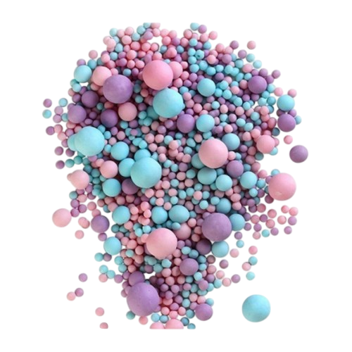 Посыпка "Драже из глазури" (голубое/сиреневое/розовое) — это не сахарные шарики, а миниатюрные шарики или фигурки, сделанные из рисовой муки, покрытые цветной сахарной глазурью.